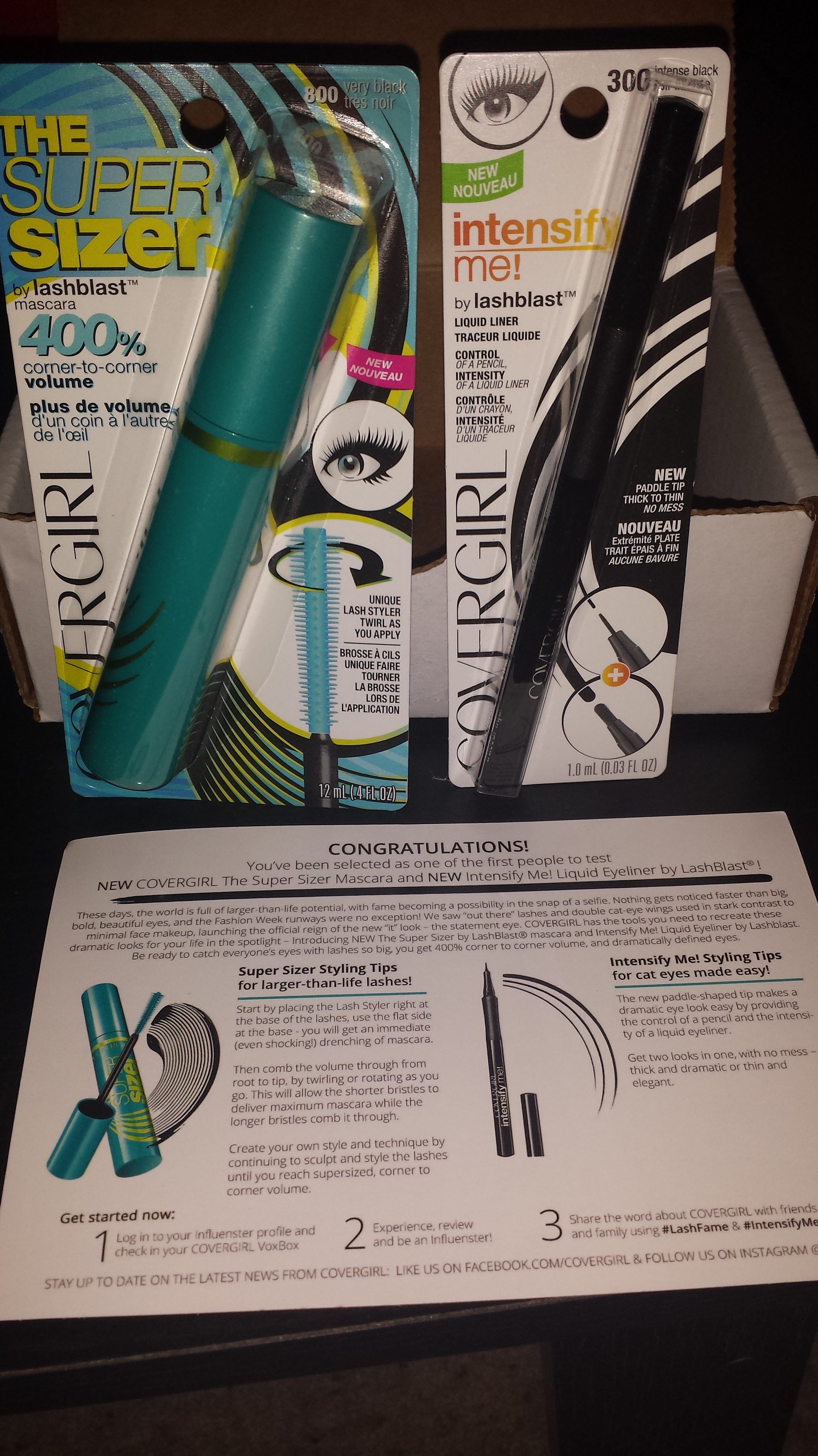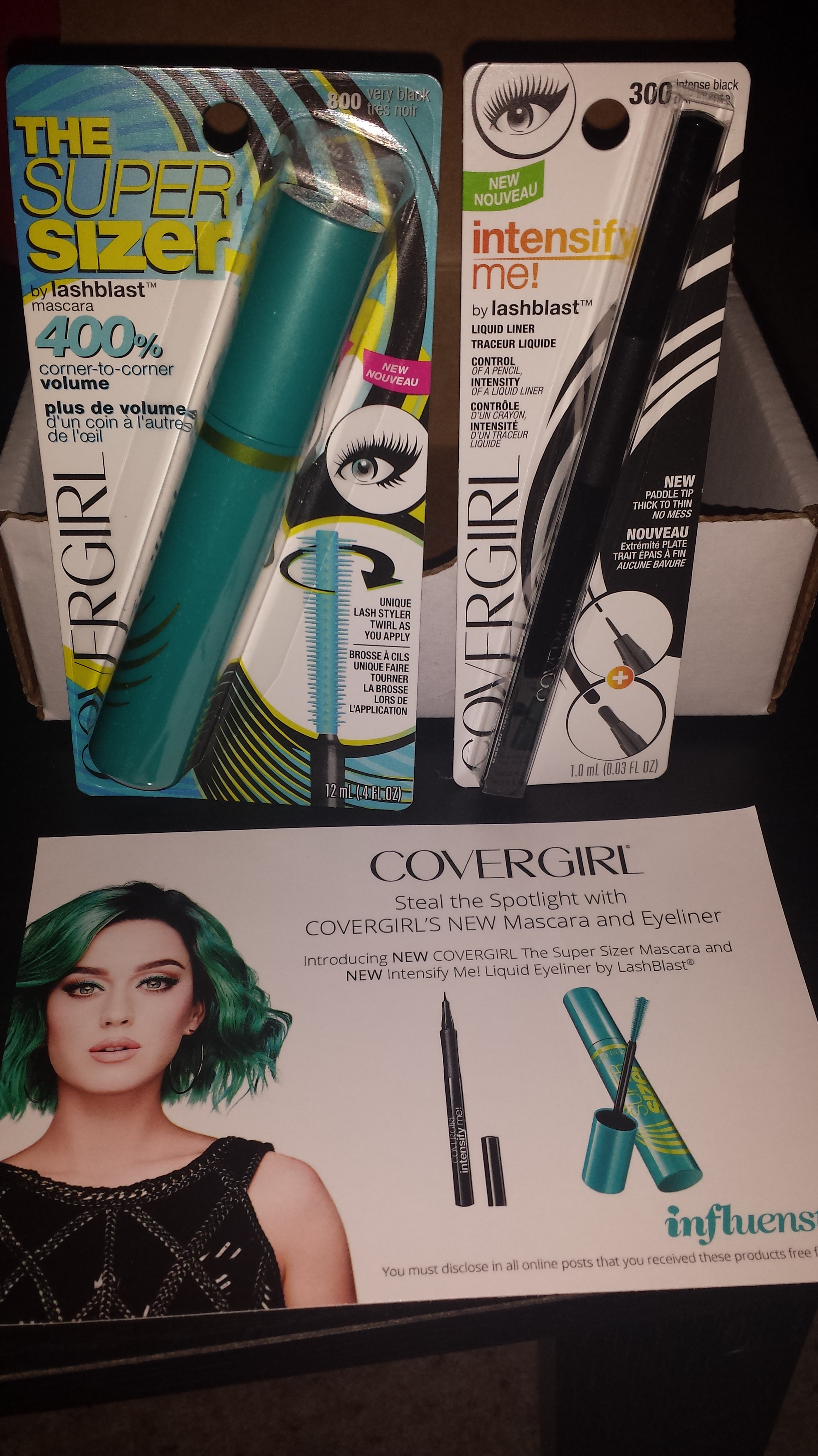 Influenster sent me this complimentary box for review purposes. Inside was the new COVERGIRL The Super Sizer Mascara and new Intensify Me! liquid eyeliner by LashBlast. I am not really a huge fan of liquid eyeliner, however I have been using this stuff ever since I got the box and I think I am starting to change my opinion on liquid eyeliner. It’s so easy to use. Go from thick to thin with just a flip of the tip. The mascara is also nice. I like how enormous the container itself is. The mascara itself definitely adds a lot of volume. Your eyes will be so bold and alluring.