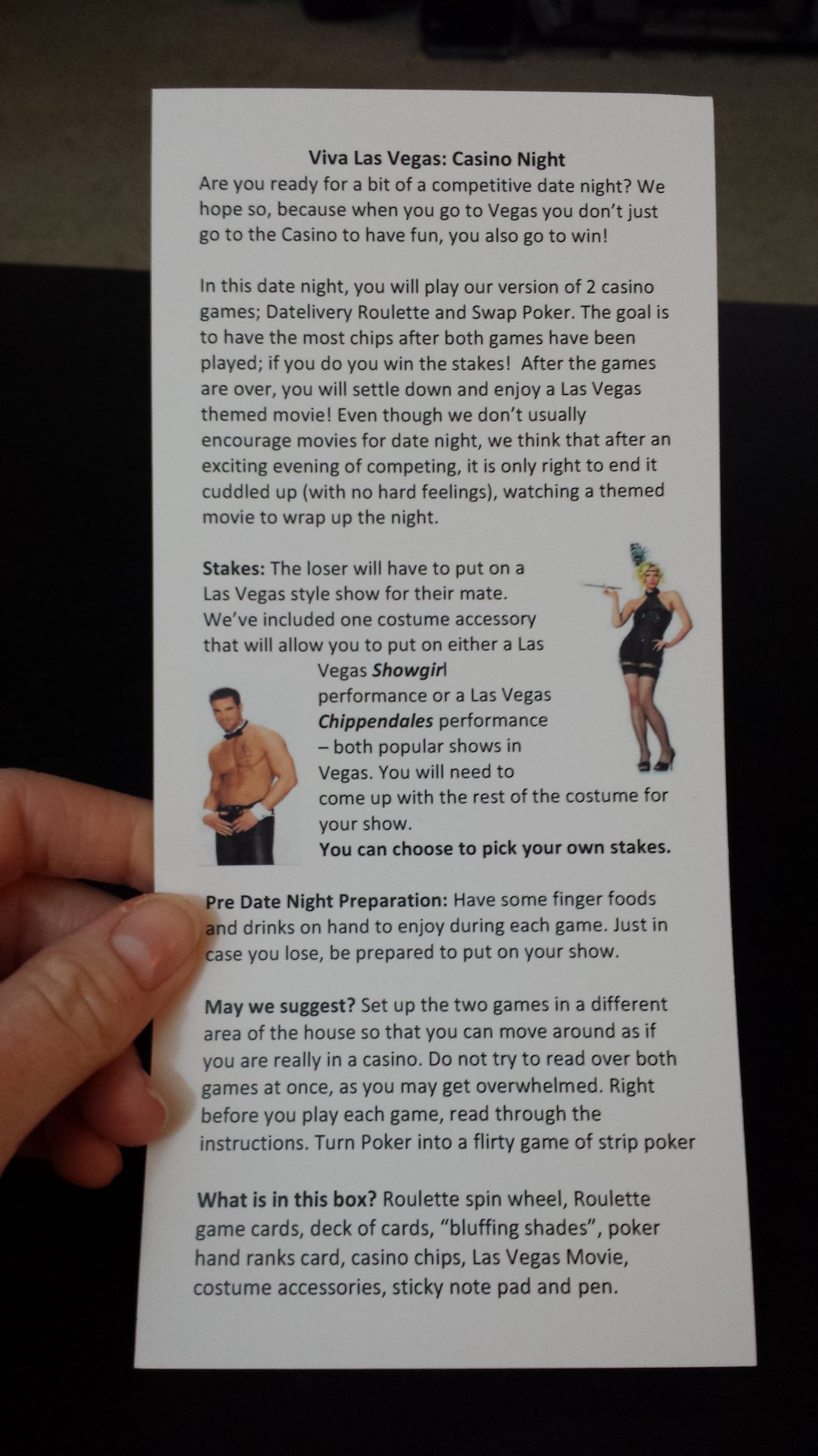 Description of your date night. The stakes. Pre night preparation. Suggestions and a run down of whats in the box. This months theme was Viva Las Vegas: Casino Night.