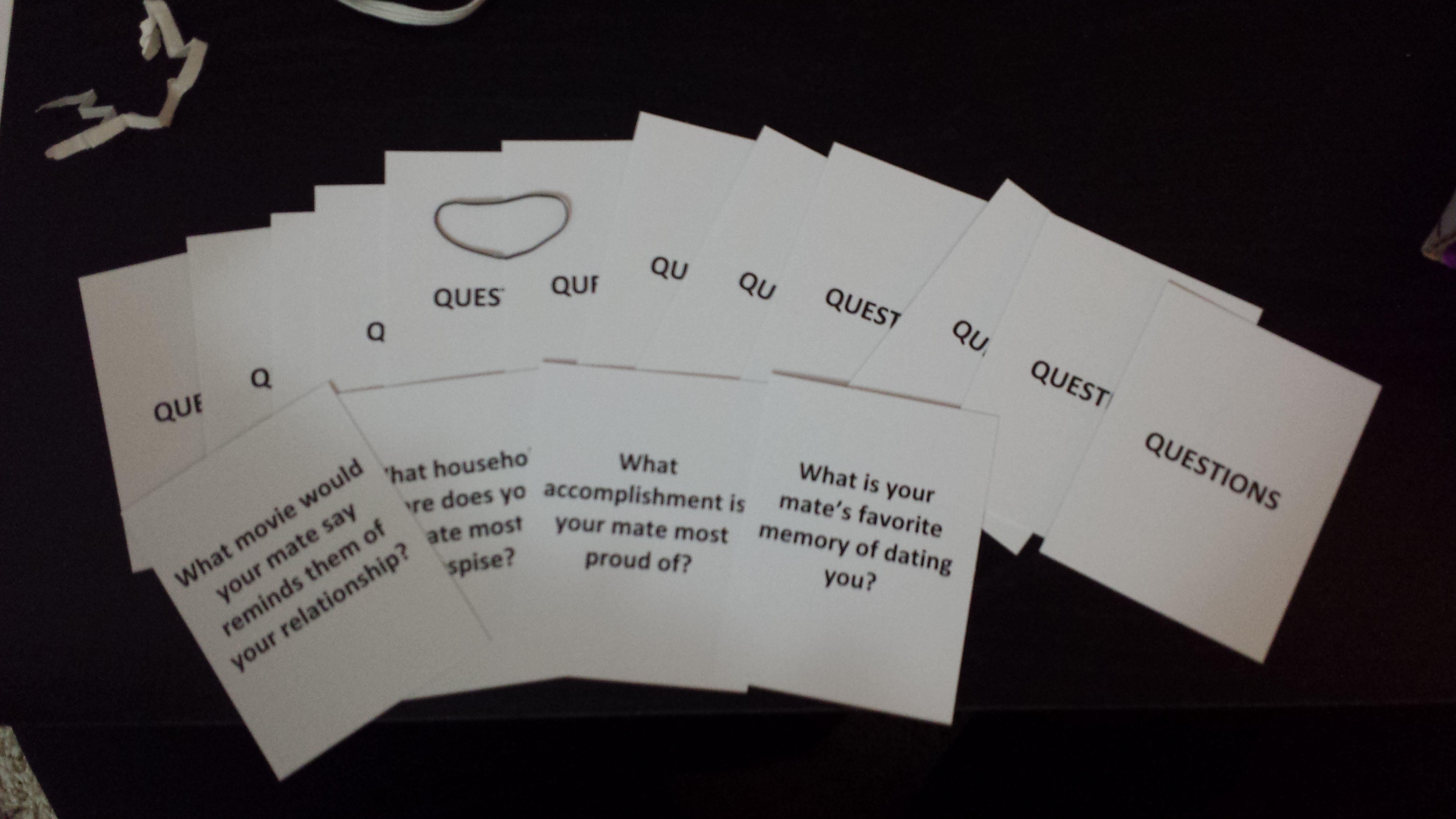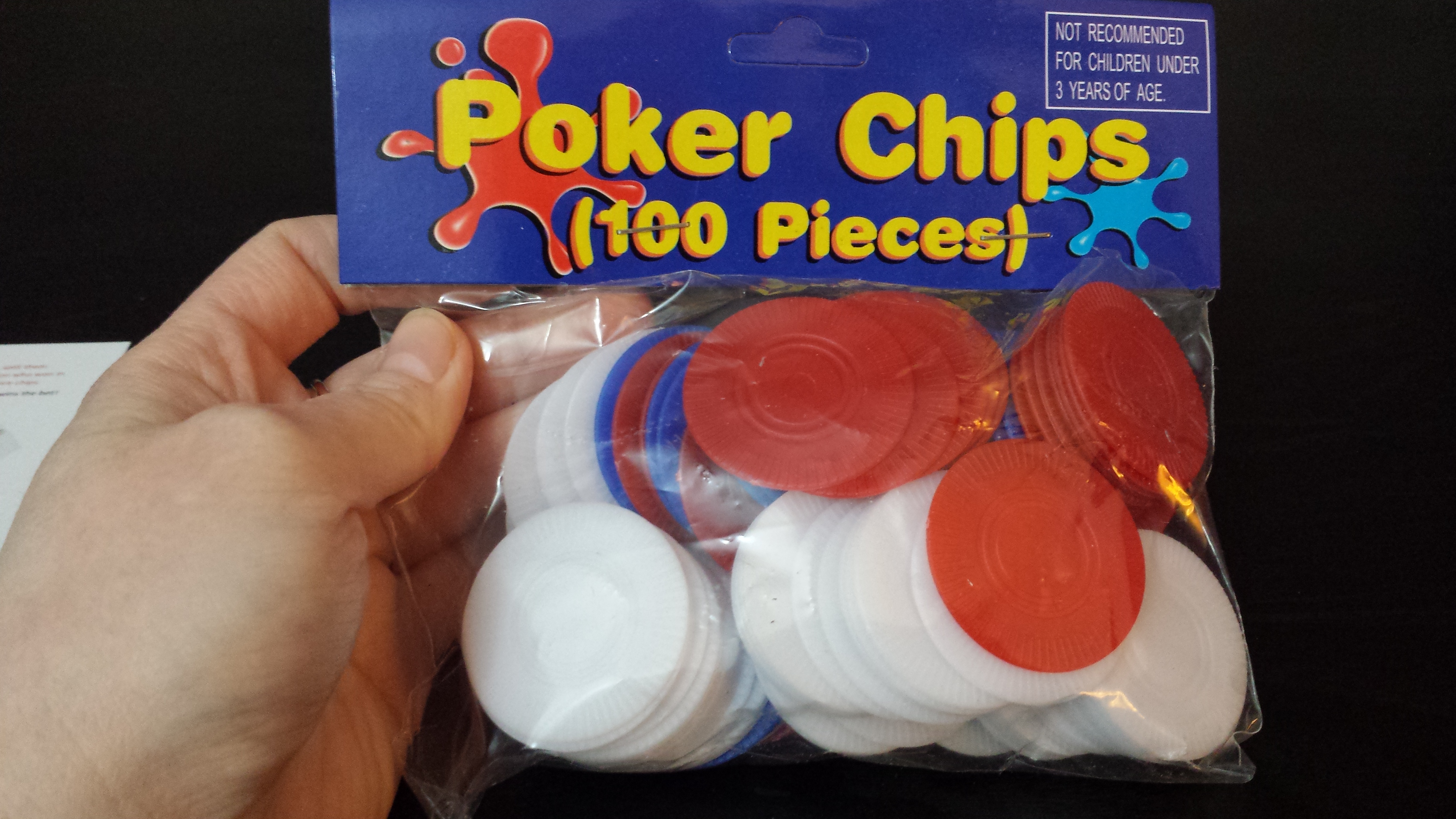 Poker chips, Sticky note pad, and pen( pen and paper were used for answers to the question cards)