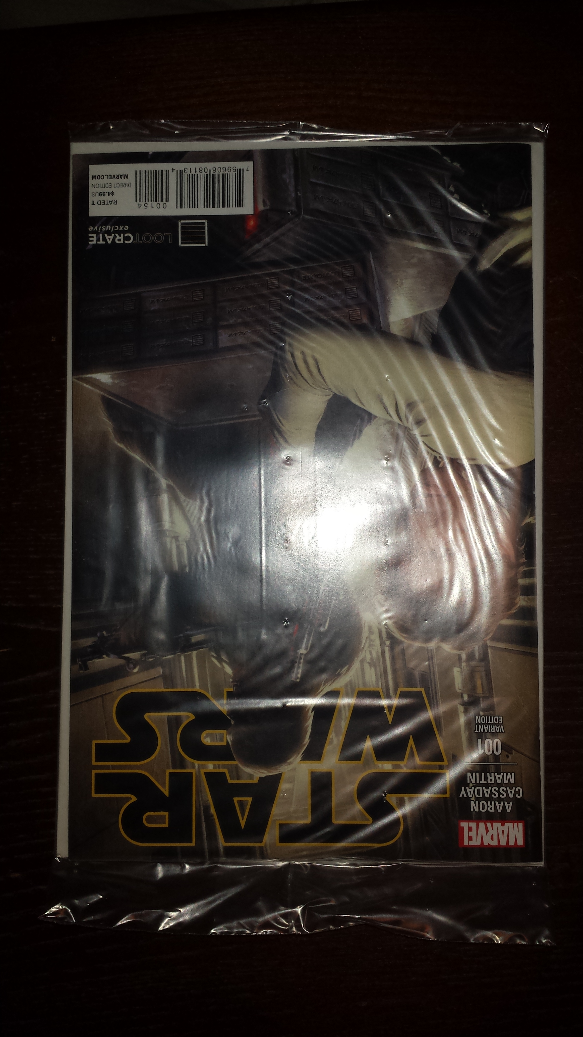 Sorry the picture isn’t the clearest but it came in shrink wrap and I didn’t want to take it out lol. This is a LootCrate exclusive variant cover for Star Wars issue 1 from marvel. Now I already have 3 other copies of this comic ( all with different covers) but what I like about this one is that it features Han solo and Chewbacca smuggling out a shipment of LootCrate boxes. Amazon has this listed for $7.47 plus shipping.