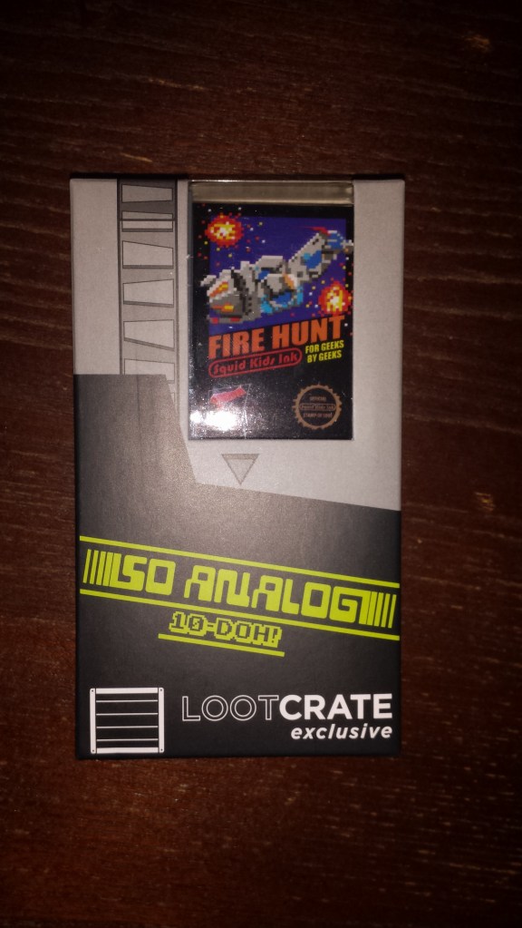 Now this is pretty cool it is also an exclusive and its called 10-doh! figures. These have the look of classic Nintendo cartridges but the design on them are spoofing a movie (that’s the LootCrate exclusive ones), tv shows, or video games. And they have little eyes, hands and feet also an old school laser gun (duck hunt style). Not really something I’m into but the novelty of these figures are pretty cool. If you try to buy these on their site they are about $35 a piece ( I think) but I found a mini BLIND box on amazon for $9.94 plus shipping http://www.amazon.com/BLINDBOX-10-Doh-Series-Designer-Figures/dp/B008S2JOZY