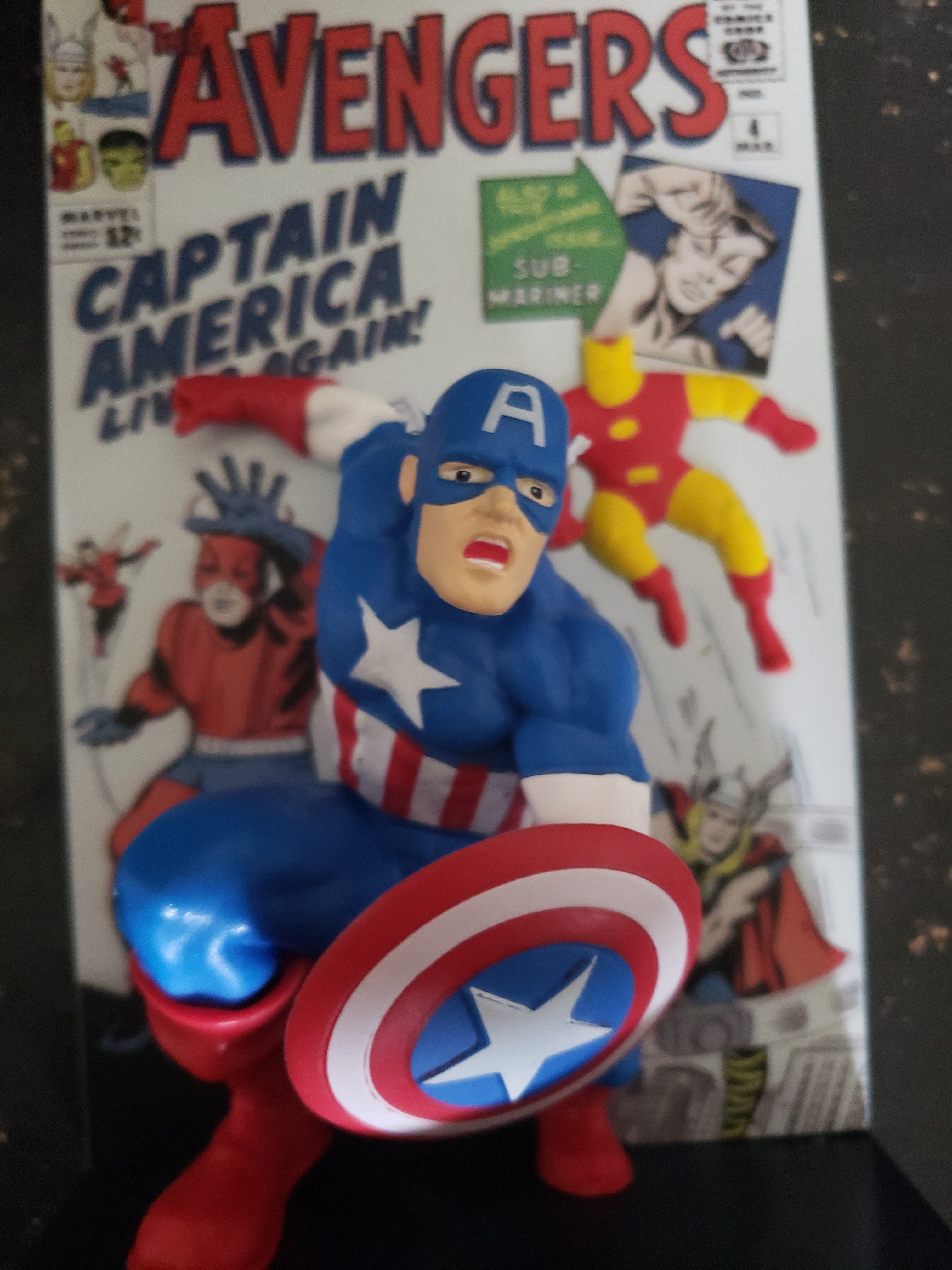 Next is it just me, or does Captain America look like he’s so constipated that he is about to explode? Overall I think they did a decent job trying to recreate this comic book cover as a standee but it does seem like it was poorly constructed and rushed. This is a Loot Crate made product.