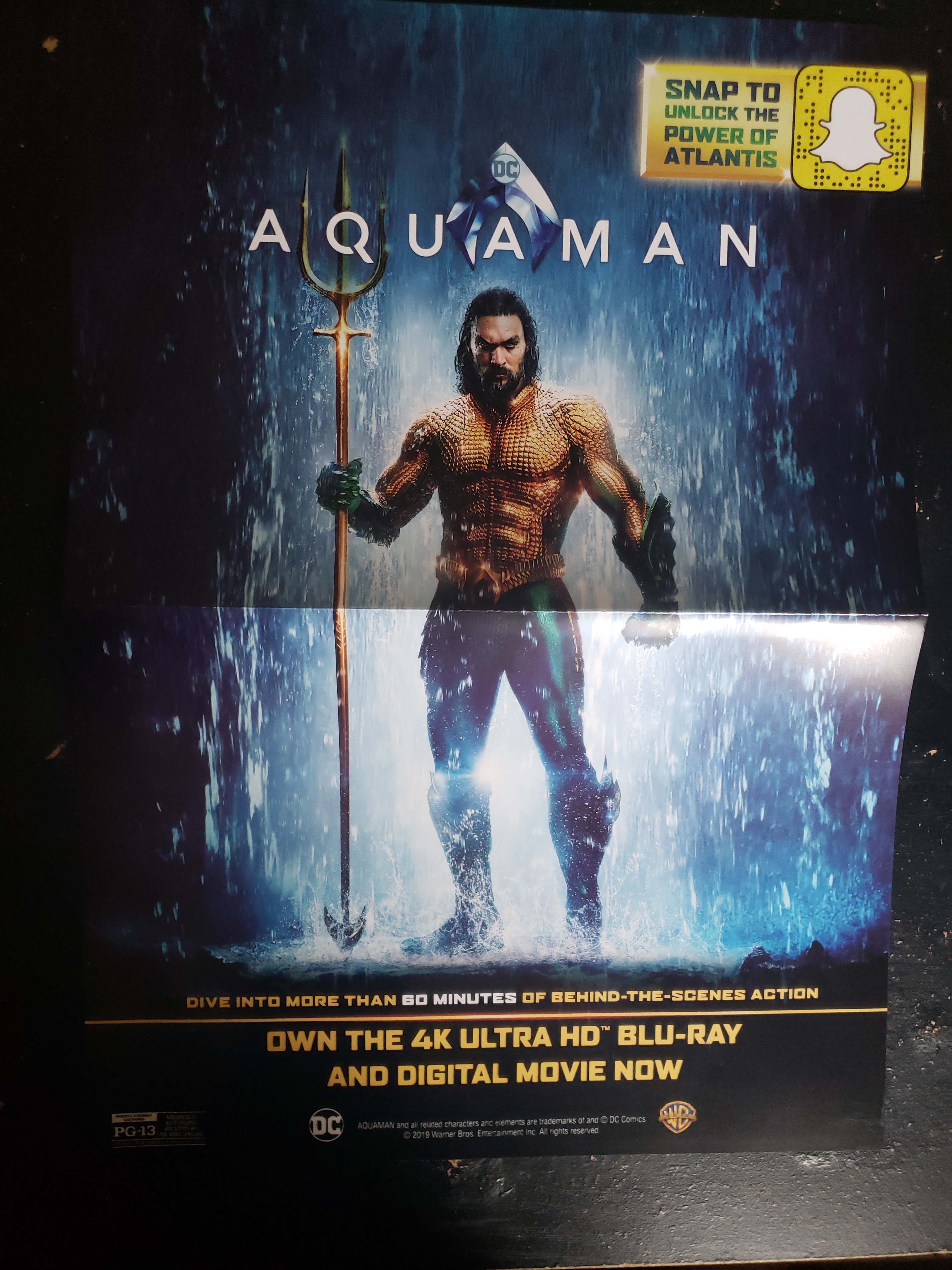 Next we got this pretty standard Blu ray release poster. I price this at $0 since it’s just a promo piece. This was supposed to come with an Aquaman challenge coin, but there was a note on the card explaining that there was a delay with the coins and that they will be shipped at a later date. This says that it is a Loot Crate made product but it doesn’t really seem like it is. Side note this is the second time that this has happened in the last few boxes. The last time was with the Snake Plisken eye patch.