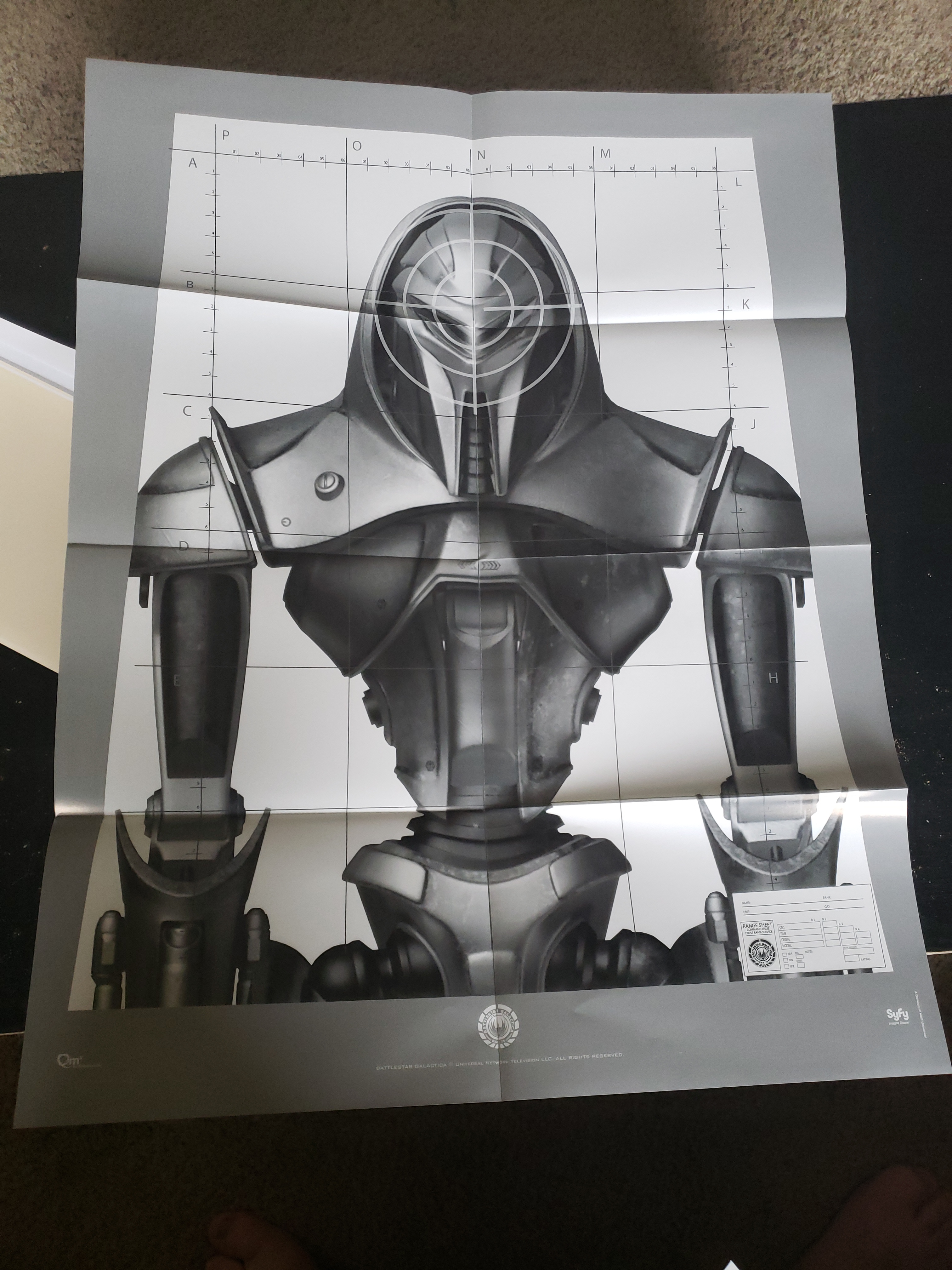 Next we received this BattleStar Galactica swag. It’s a range target which is something that they have included in one of their other boxes. It’s just a picture of one of the robots from the show that you can use for target practice or I’m guessing just to display in your room. I would price this one out at $3.