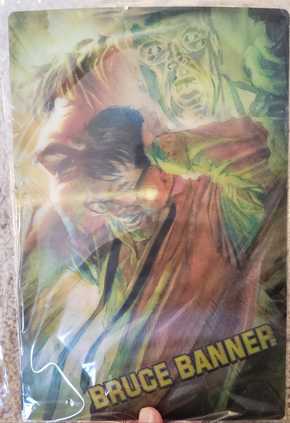 LOOT CRATE EDITION Hulk lenticular print: Licensed from Marvel. Made by Open Road. I feel like this print is honestly just a 3D picture placed on a cardboard backing. But, it is a sturdy picture. It was sent in a plastic covering as well, which was nice. One side shows Bruce Banner in various poses and the other shows just onE BIG HULLLKKKK. Not sure what Steve plans to do with this one. Cost: This wasn`t found on Amazon, but on Ebay it is listed for between $3-12 including the shipping. We are gonna price it out at $8.