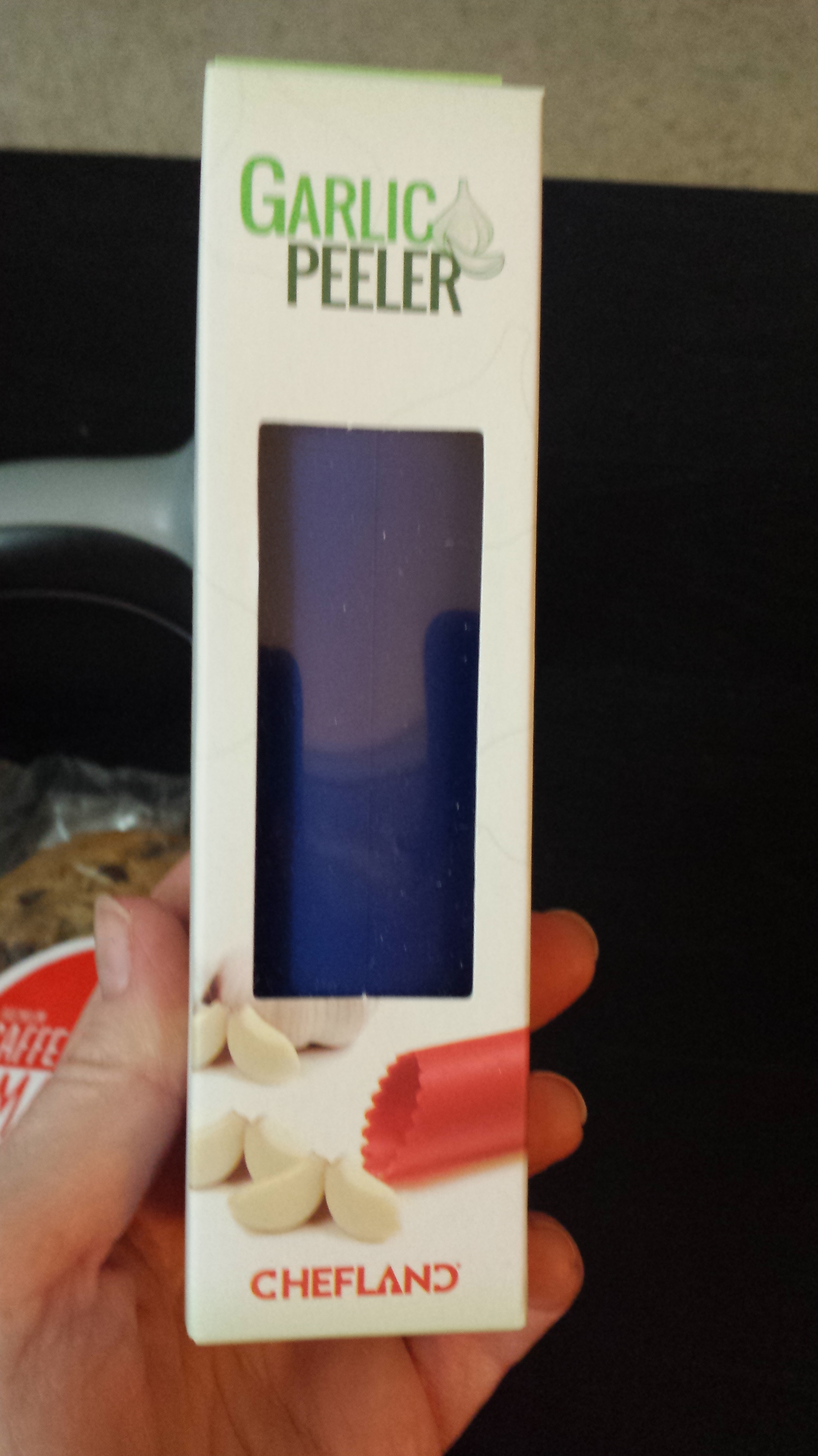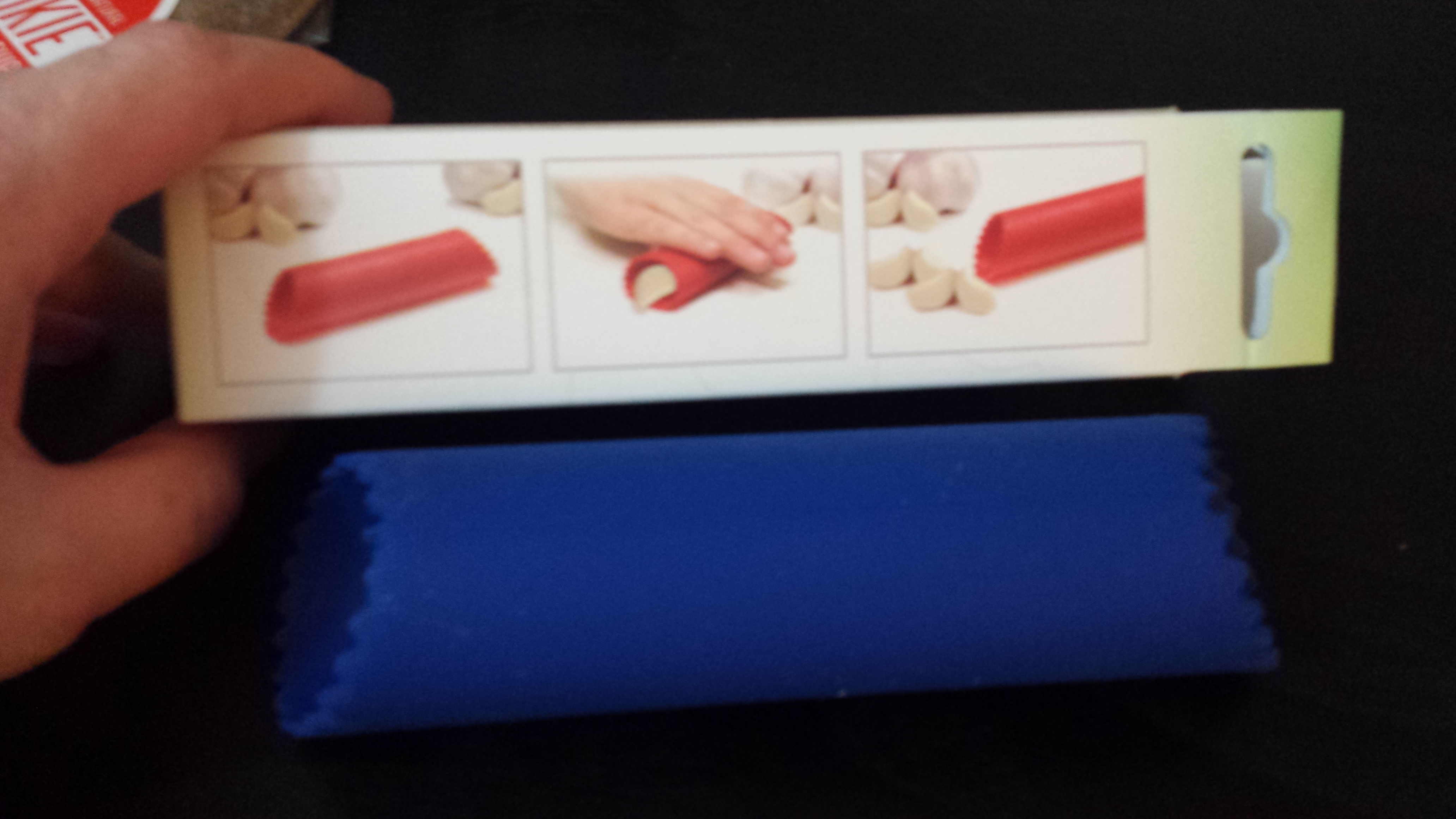 Chefland garlic peeler. Danklo`s retail is $3 which is about what I was finding online after shipping. This is the second thing we will use. Hope it works. Last time (S) made Chili he put in way too much garlic so maybe this can help him out a bit.