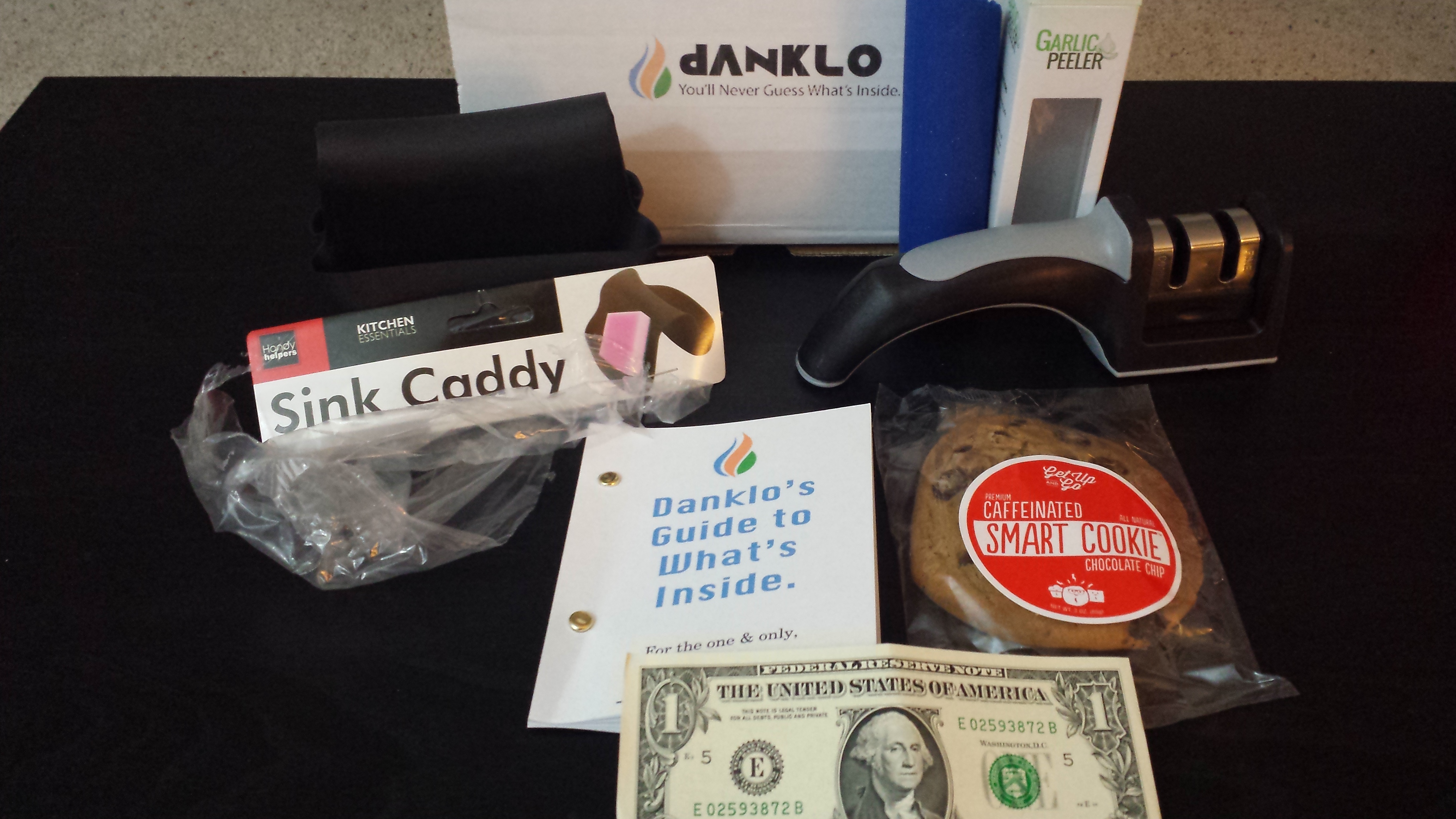 So this is my last Danklo box. Paid about $20 for the box. Got about $19 worth of stuff including the dollar bill. This box is so not it. So save yourself twenty bucks and get another box.