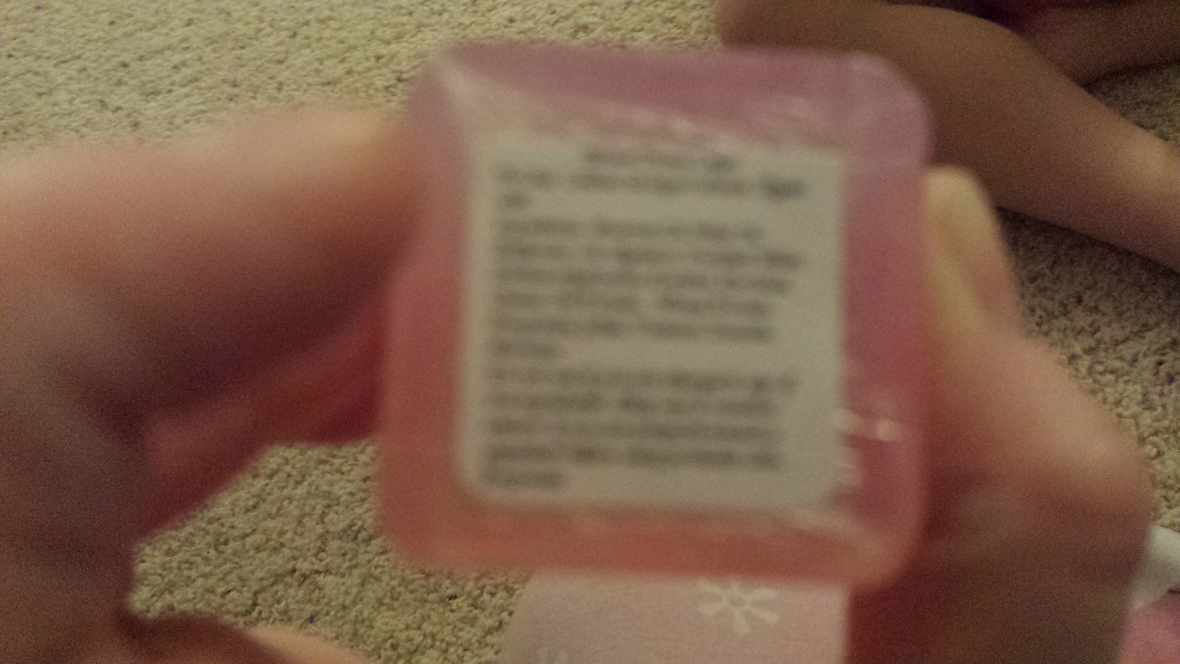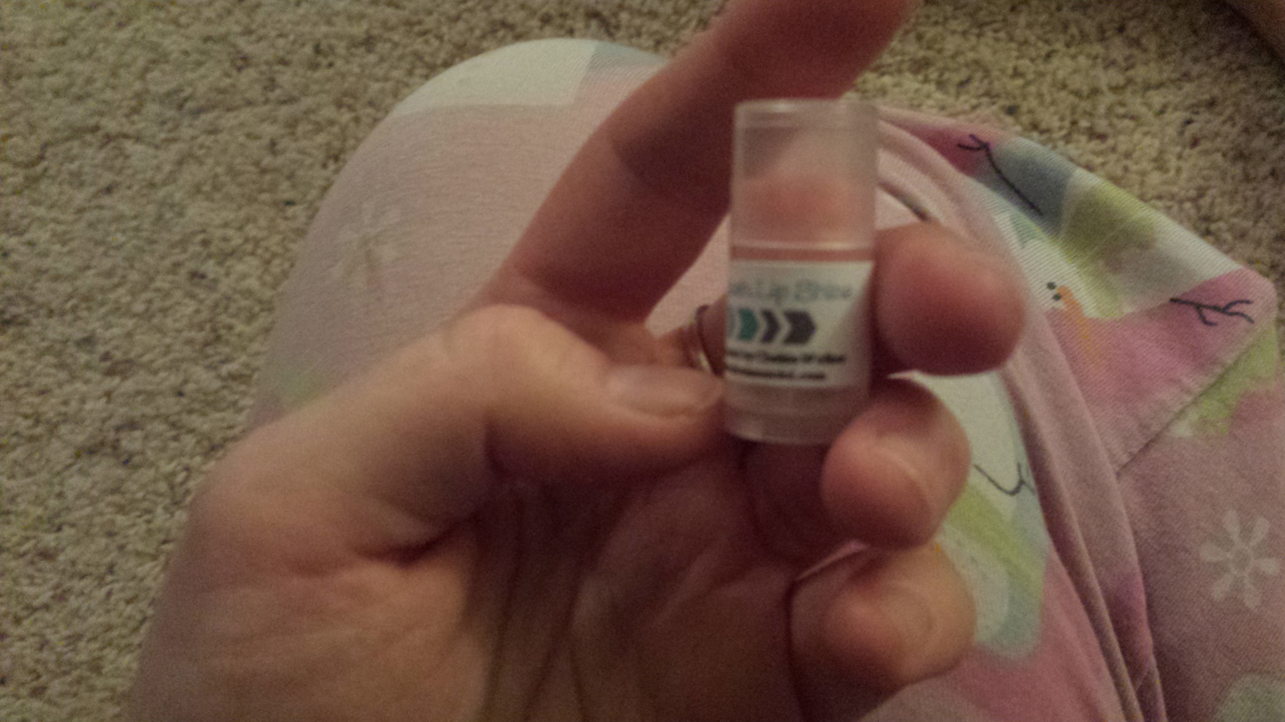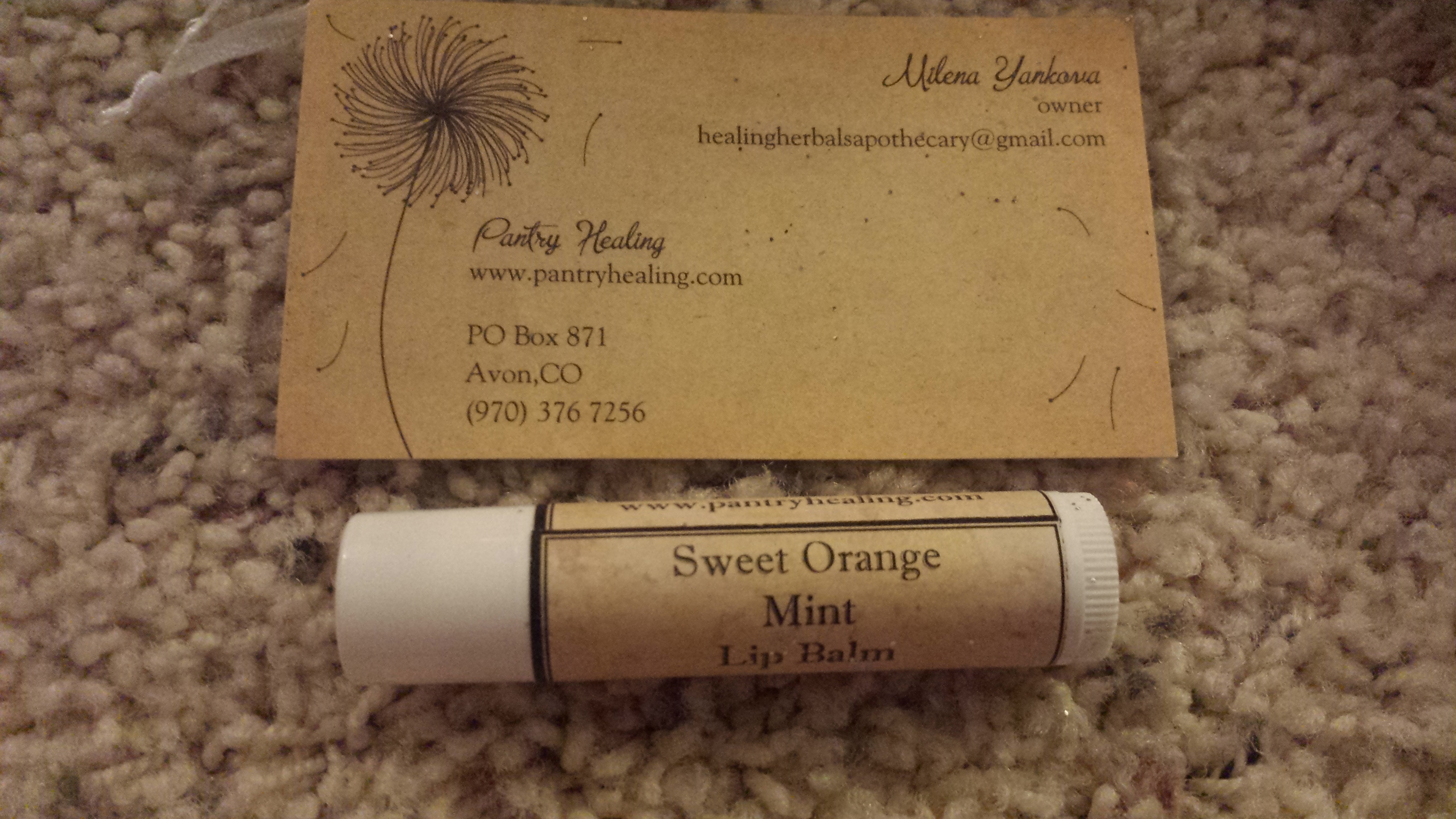 Sweet orange mint lip balm. Smells very minty. I had R try it, so now it belongs to her. You can purchase your own tube here for $2.50. Or check out pantryhealing`s other products on their Etsy site. This came in a cute little bag. Only downfall is I now have glitter EVERYWHERE. Lol
