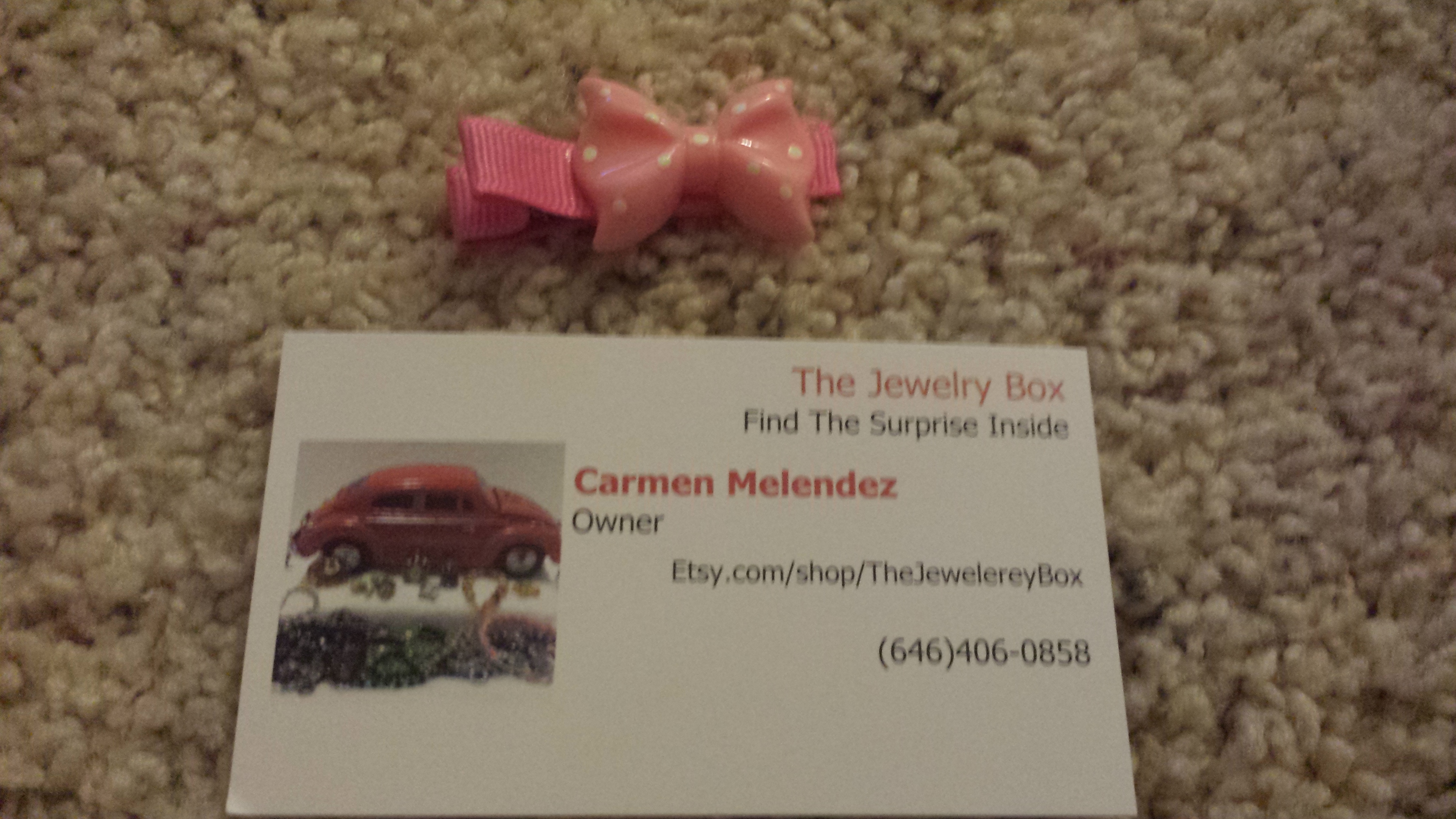 Pink hair clip with pink and white ribbon on it. This now belongs to R and it looks adorable on her. Couldnt find any of these clips on their site. However, they do have similar clips for $2.00. They do not have any coupon codes but they do have cute stuff. Check them out here.