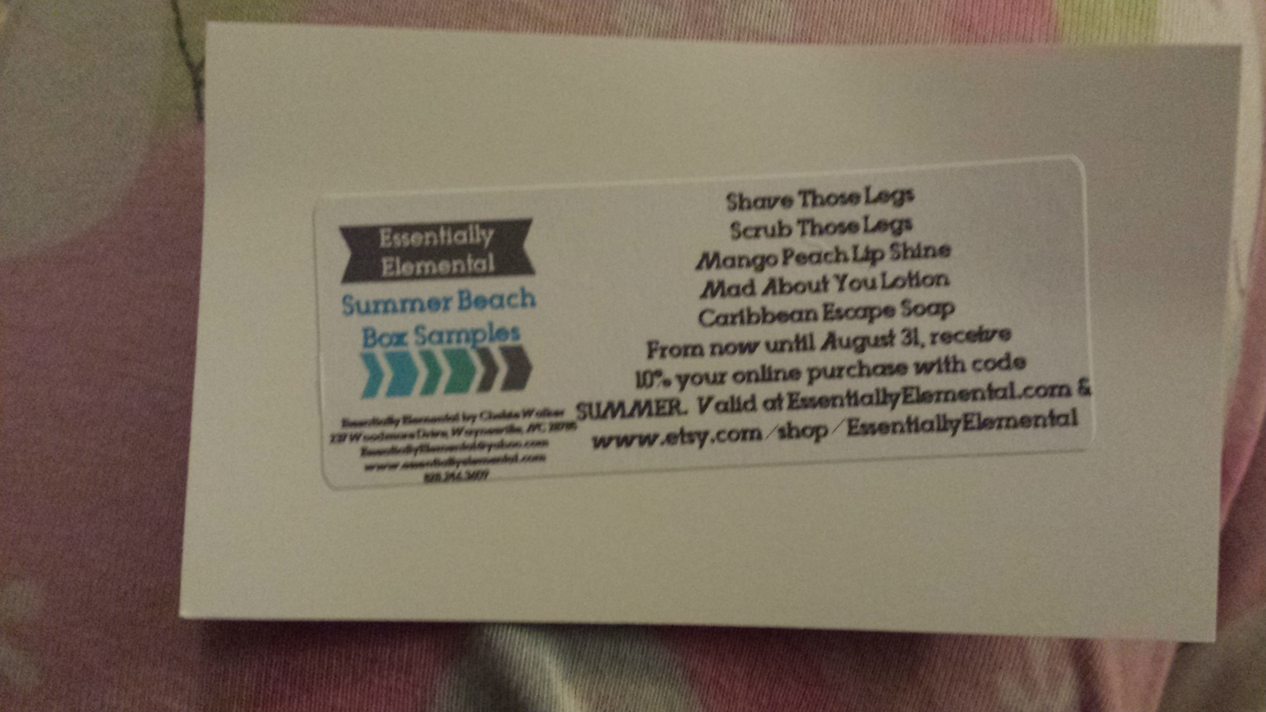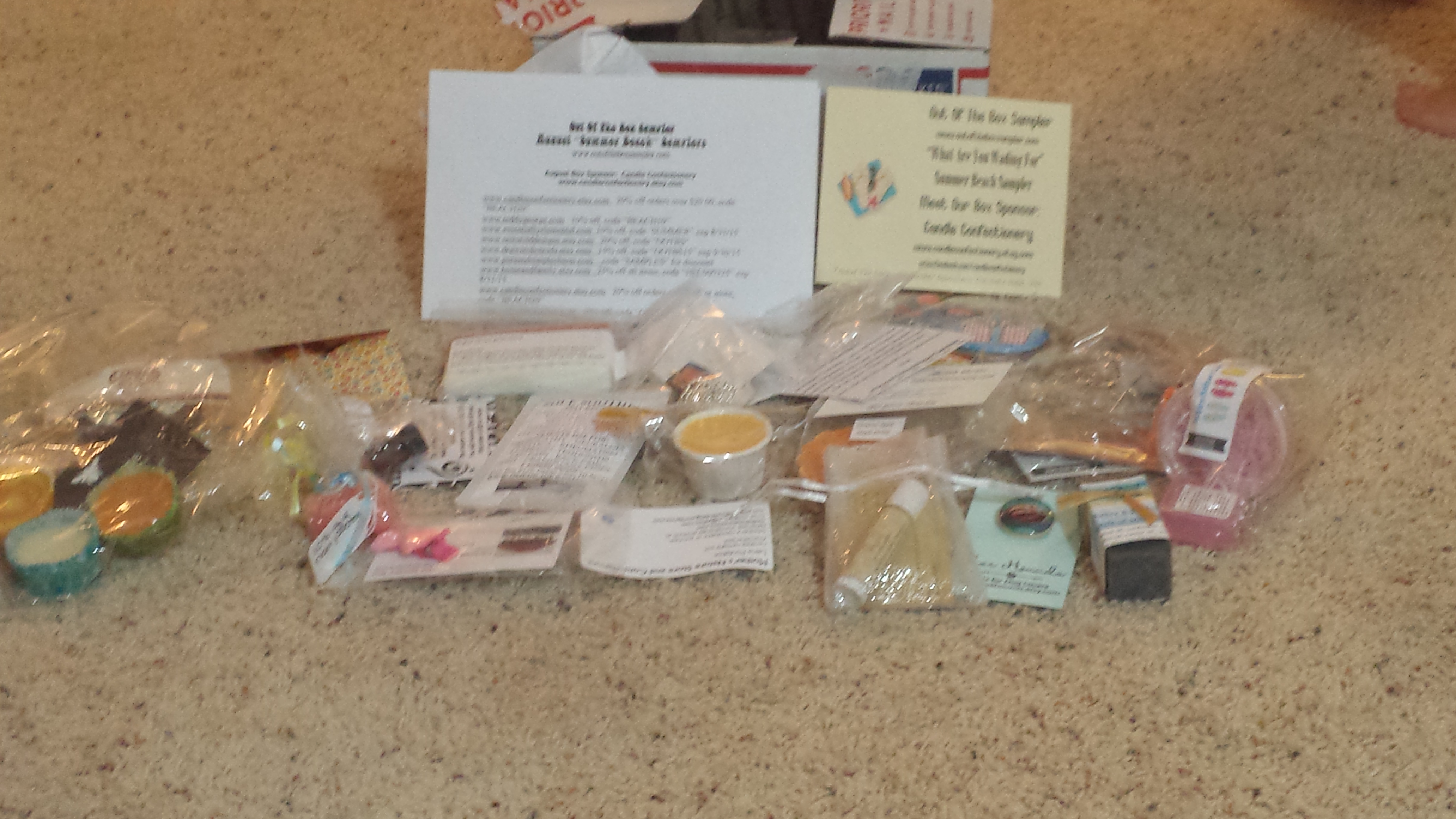 I am so excited that I got this box again! I absolutely love it. I was worried about getting it this time because of the credit card incident last time. So, this time around I paid with my PayPal account… NO PROBLEMS!! YAY!! The theme for August was “What are you wading for?” This box was a summer beach sampler sponsored by Candle Confectionery. Be sure to check them out at http://www.facebook.com/candleconfectionery
