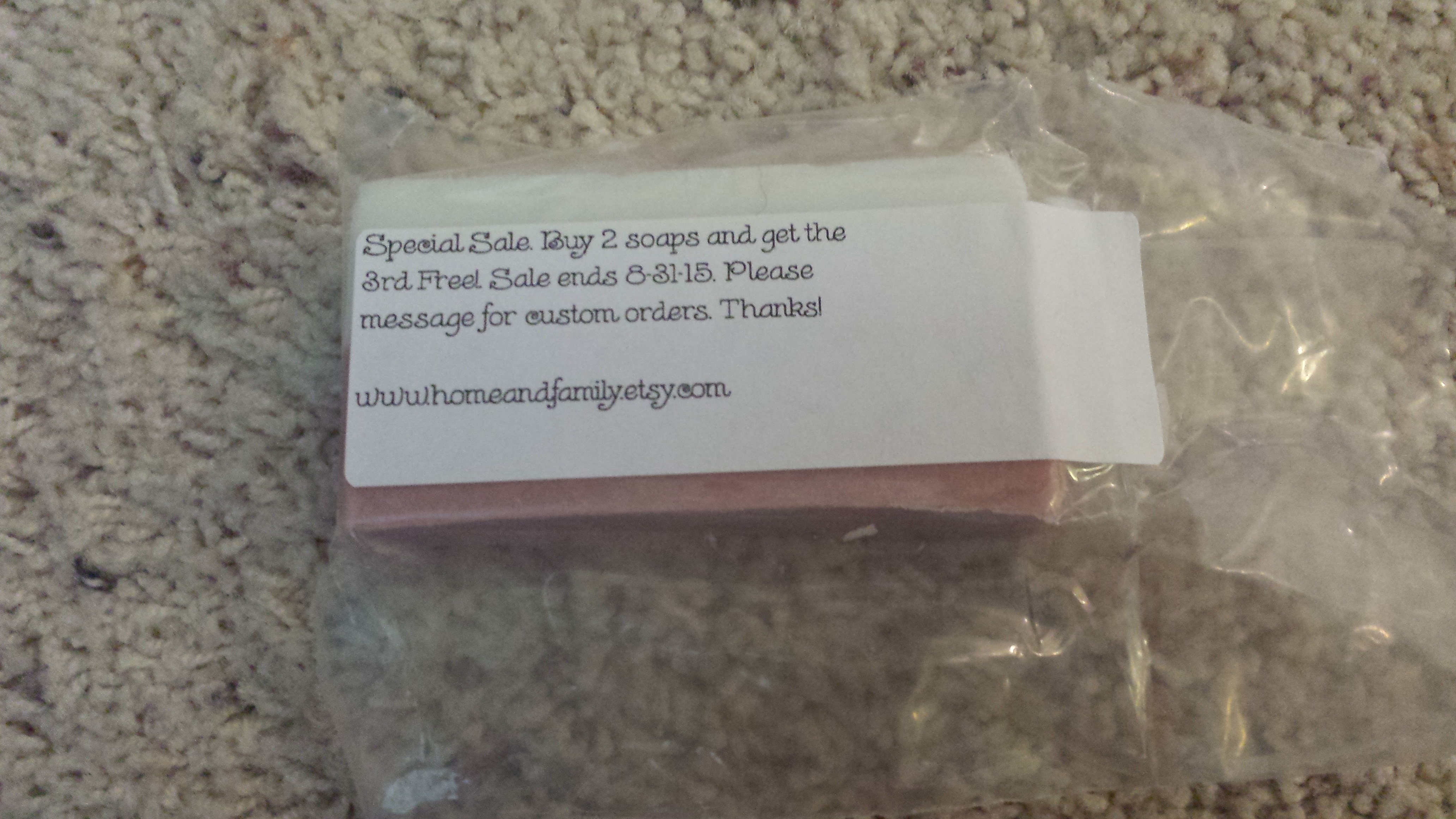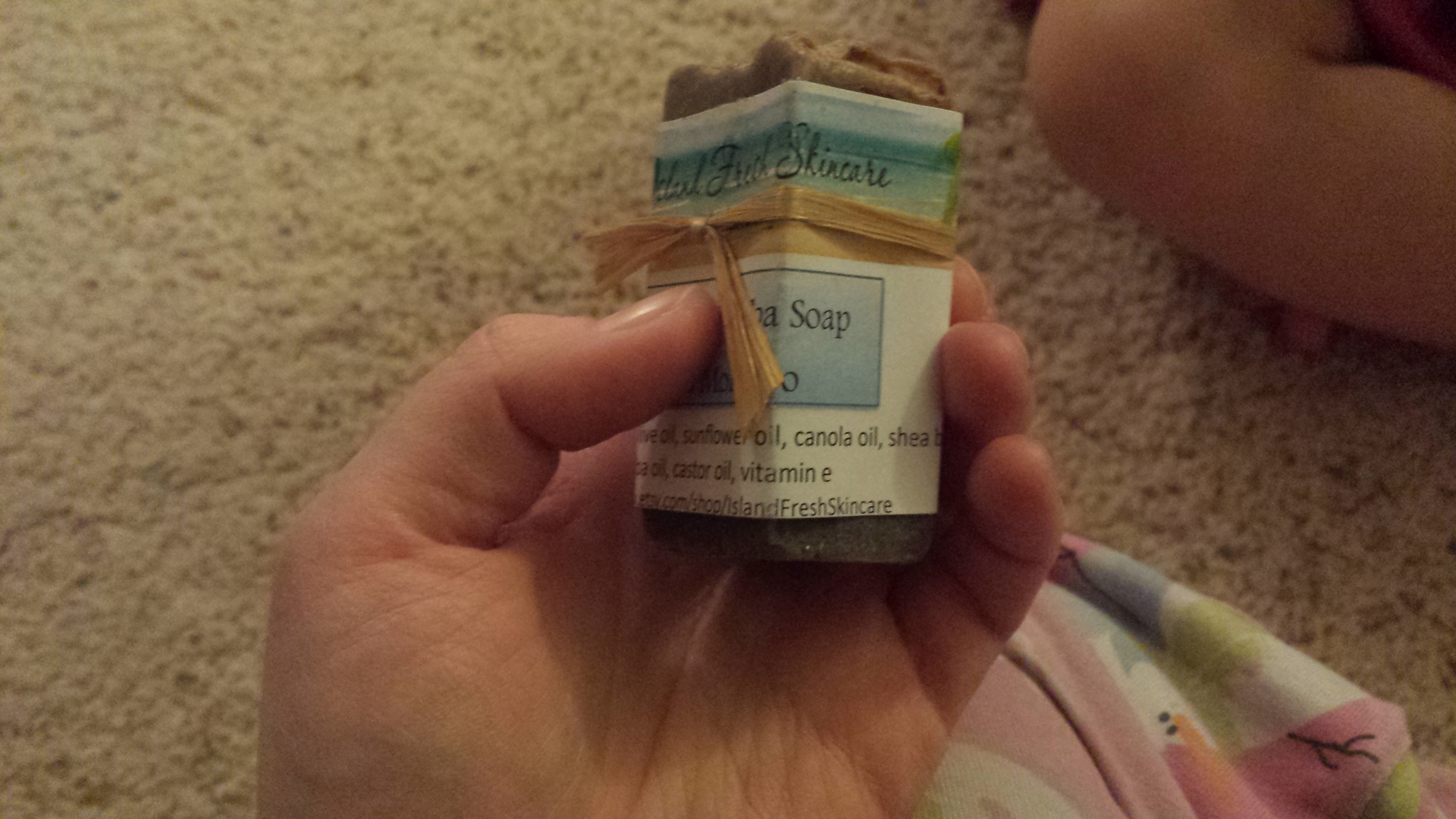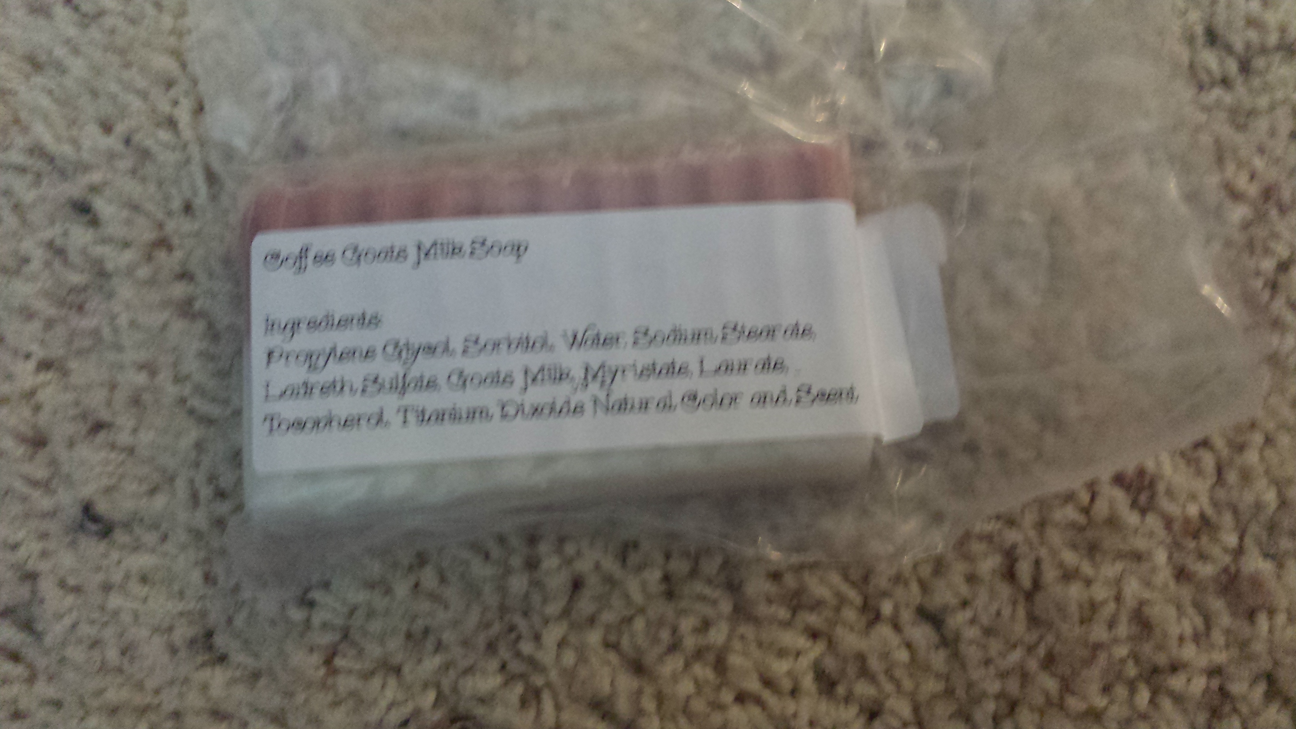 Coffee goats milk soap. Once again another that will be given away or re-gifted. I don’t like smell of this. Offering 25% off all items. Code HFC000325.