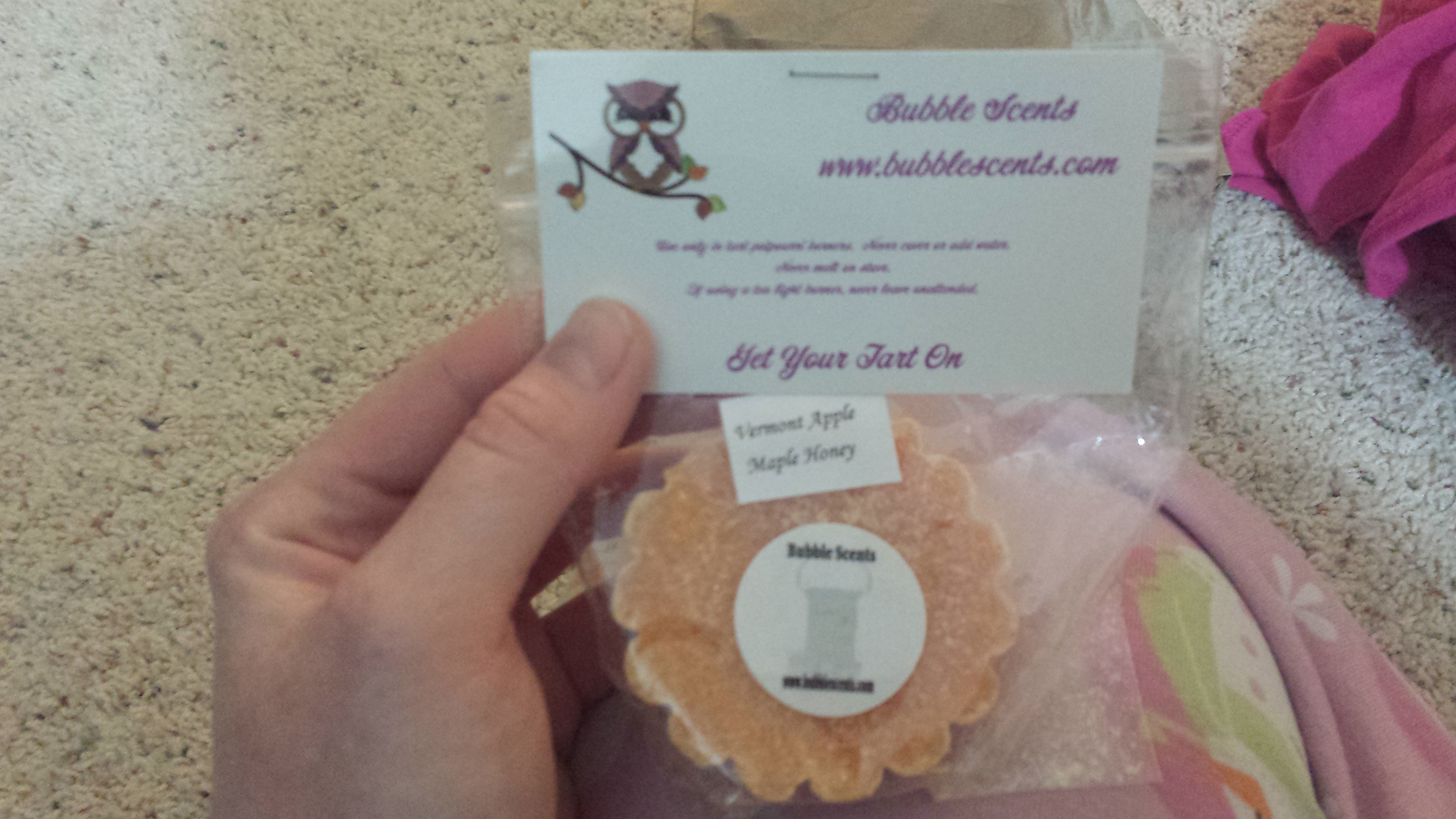 Vermont Apple maple honey wax melt. Smells good. Reminds me off fall. “Get your tart on.”