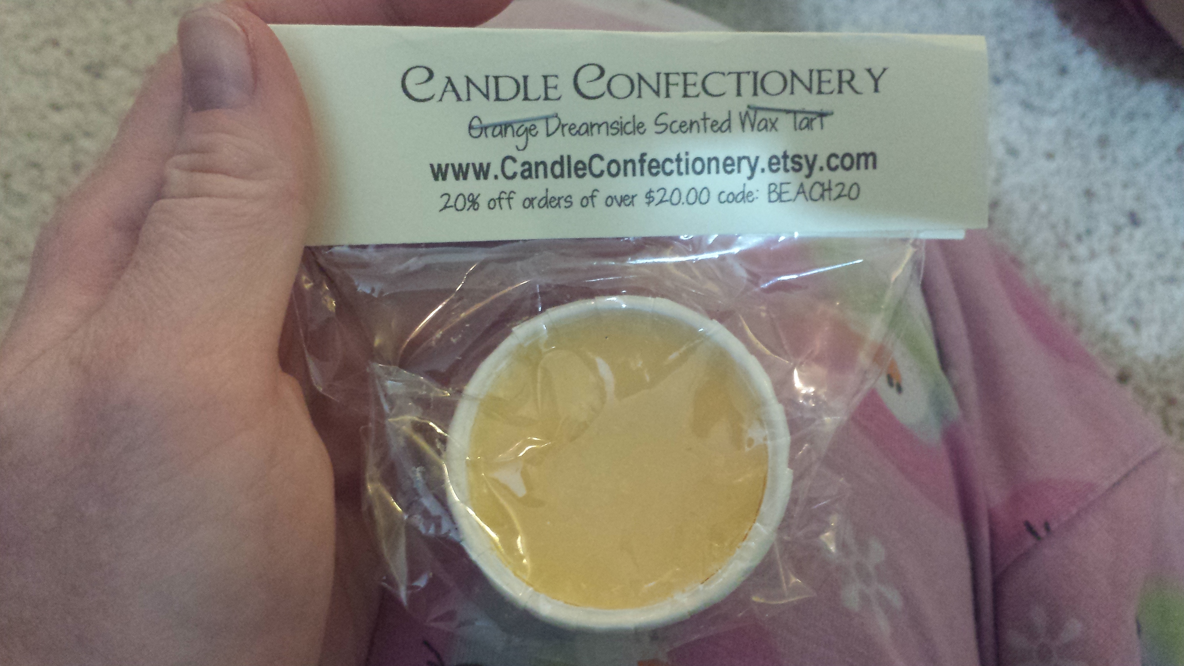 The sponsor of this months box sent out a wax tart. The same Orange creamsicle one from the last box I ordered. I am fine with that though. LOVE this scent. Be sure to check Candle Confectionery out at their link above. They are offering 20% off orders over $20. Use promo code: BEACH20. Please go and check them out. I absolutely LOVE her candles. Maybe I will talk S into buying me one soon… lol.