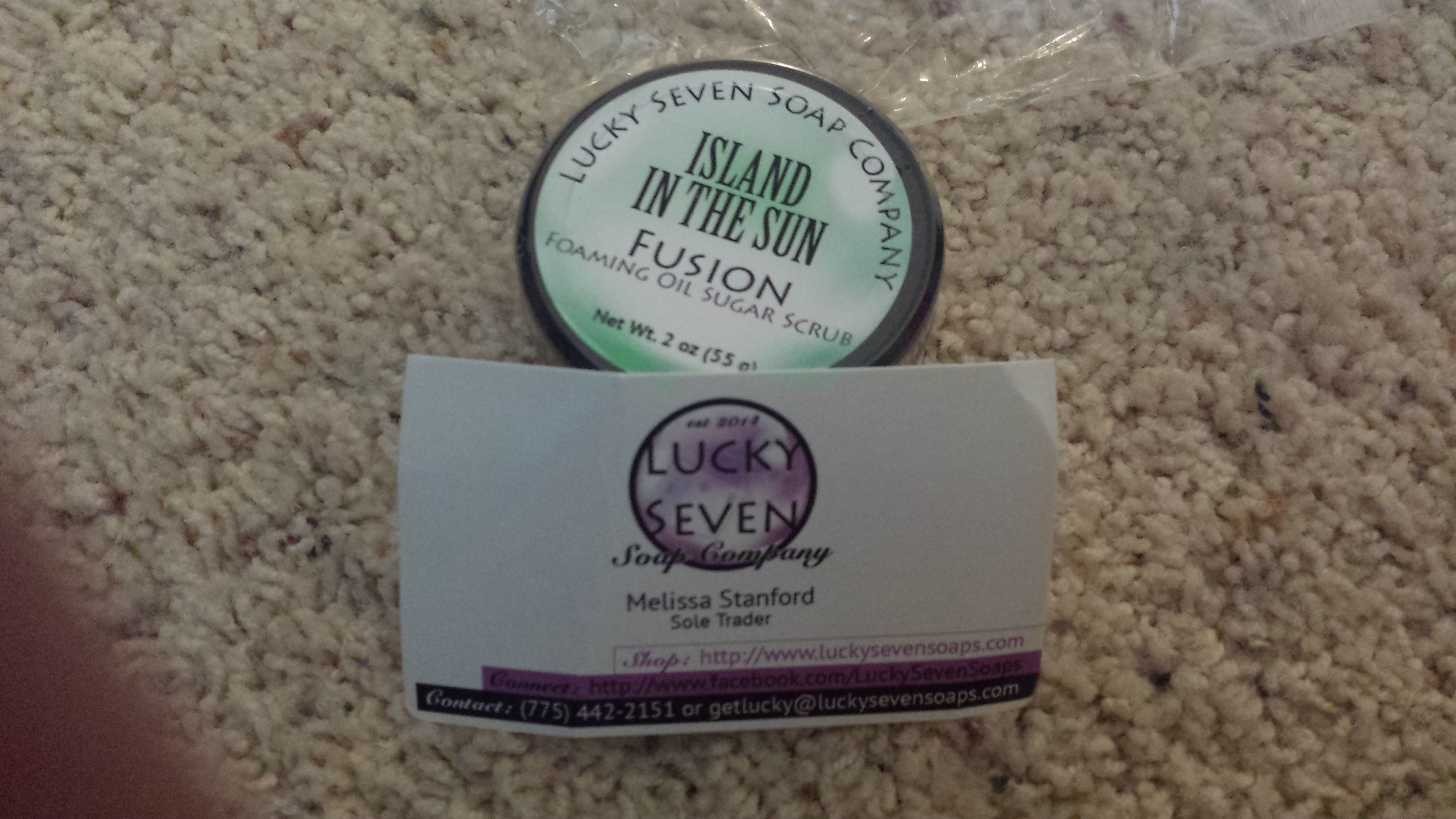 Island in the sun sugar scrub. I think it smells like lime. R says raspberry but she thinks everything smells like raspberry. Lucky Seven sent a fairly big sample. I am loving the size of this stuff. You can get their scrubs for $8.00. Get 10% off using code OOB10.