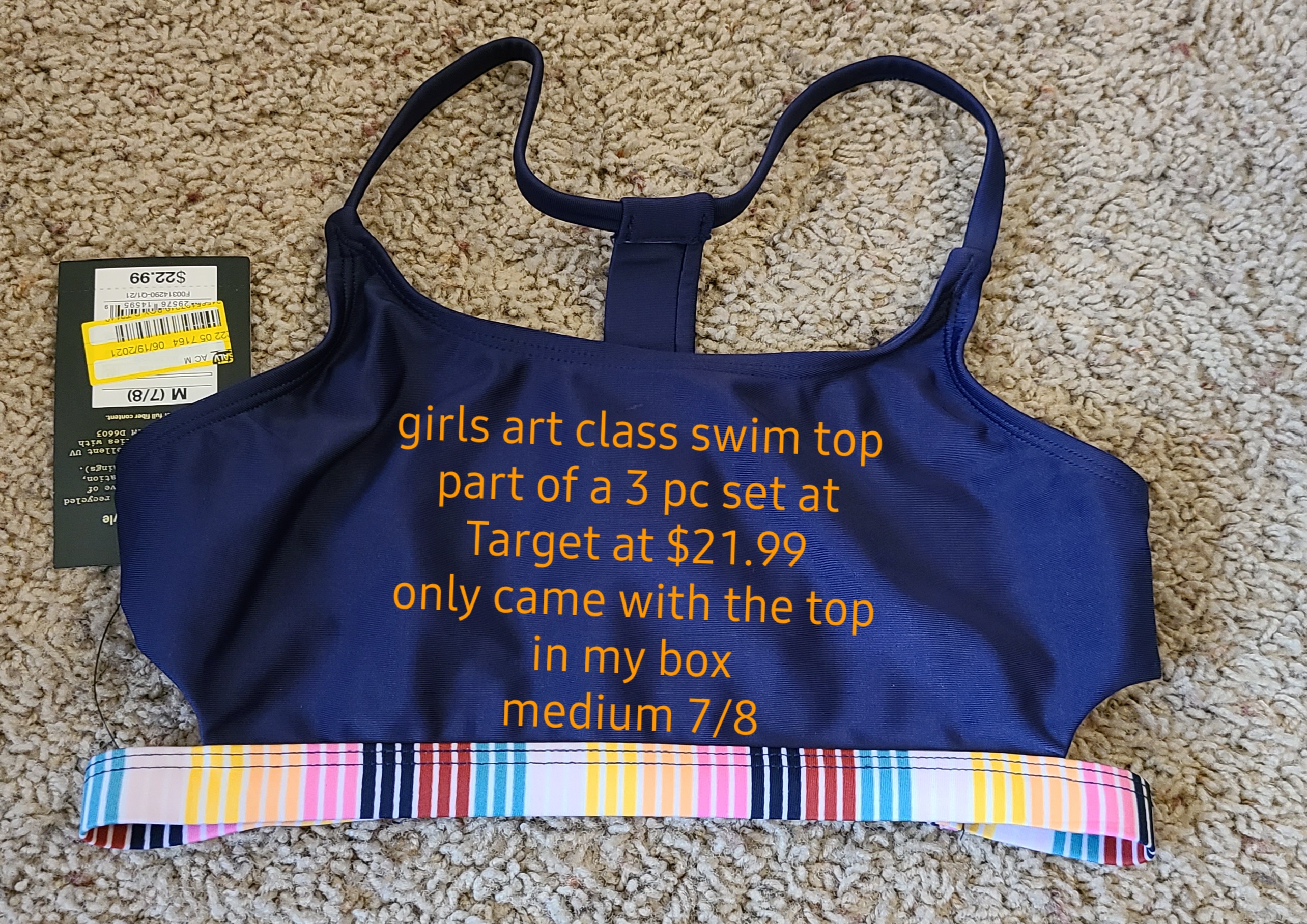 Everything from the small Target clothing box. Got a good bit of items.Arrived in great condition. Like new. No hairs on it. Not my size though, so I will not be keeping this.2 of these briefs were still attached to the packaging. The rest were just tossed in the box, which may be why we ended up with 2 extra pairs? Win for me, because these fit Xander. Random pair or boys underwear, different size than the briefs pictured above. These will not fit anyone in our house. They were all still loosely attached to the package. I love the colors! And they were the right size for October. Found another keeper. YAY! Completely random pair of kids underwear. These will definitely not fit anyone in our house. Kept these. They are cute. I like color of these as well. And they are pretty comfy. Comfortable pair of shorts for October. I like the lace design on these, but they are the wrong size. This was still in a really great condition. Like new. Would probably fit our youngest, but she would never wear it. Putting this one up for sale. Another item that I believe should have been part of a package. On Targets website, the shirts like this all came as part of a 2 pack. I couldn’t find any single ones. Won’t fit anyone here, this item is up for sale. This was supposed to be part of a 3 pc set. I’m not sure if someone only returned this part of it? Or maybe they split it up at the WiBargain warehouse? Either way it is a very colorful top. However, it’s too small for Riley. Going to attempt to sell just the one pc from the set. I think this thing is hideous. But to each their own, I guess. This had pet hair all over it. You can still see some in the photo. Attempting to sell this. This is ok looking, but I’m not really big into cheetah prints. Was sent in good shape though.This is pretty. It’s just not my style. Plus it’s see through. Avri would probably like it, if it wasn’t pink.